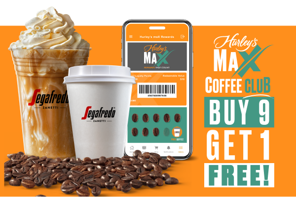 Buy 9 coffees at Hurley’s Segafredo Coffee Bar, and your 10th is FREE! Ask the barista for the list of coffees included in the Coffee Club. Whether iced or hot, you’re guaranteed to save!