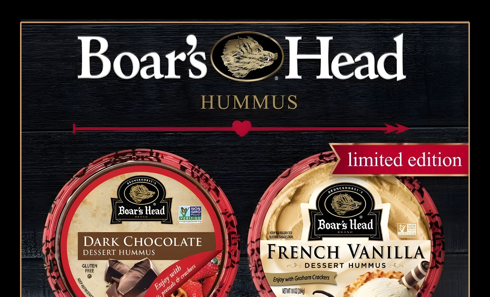 Indulge in Boar’s Head® Dessert Hummus; smooth French Vanilla or rich Dark Chocolate, crafted from creamy chickpeas and premium ingredients.