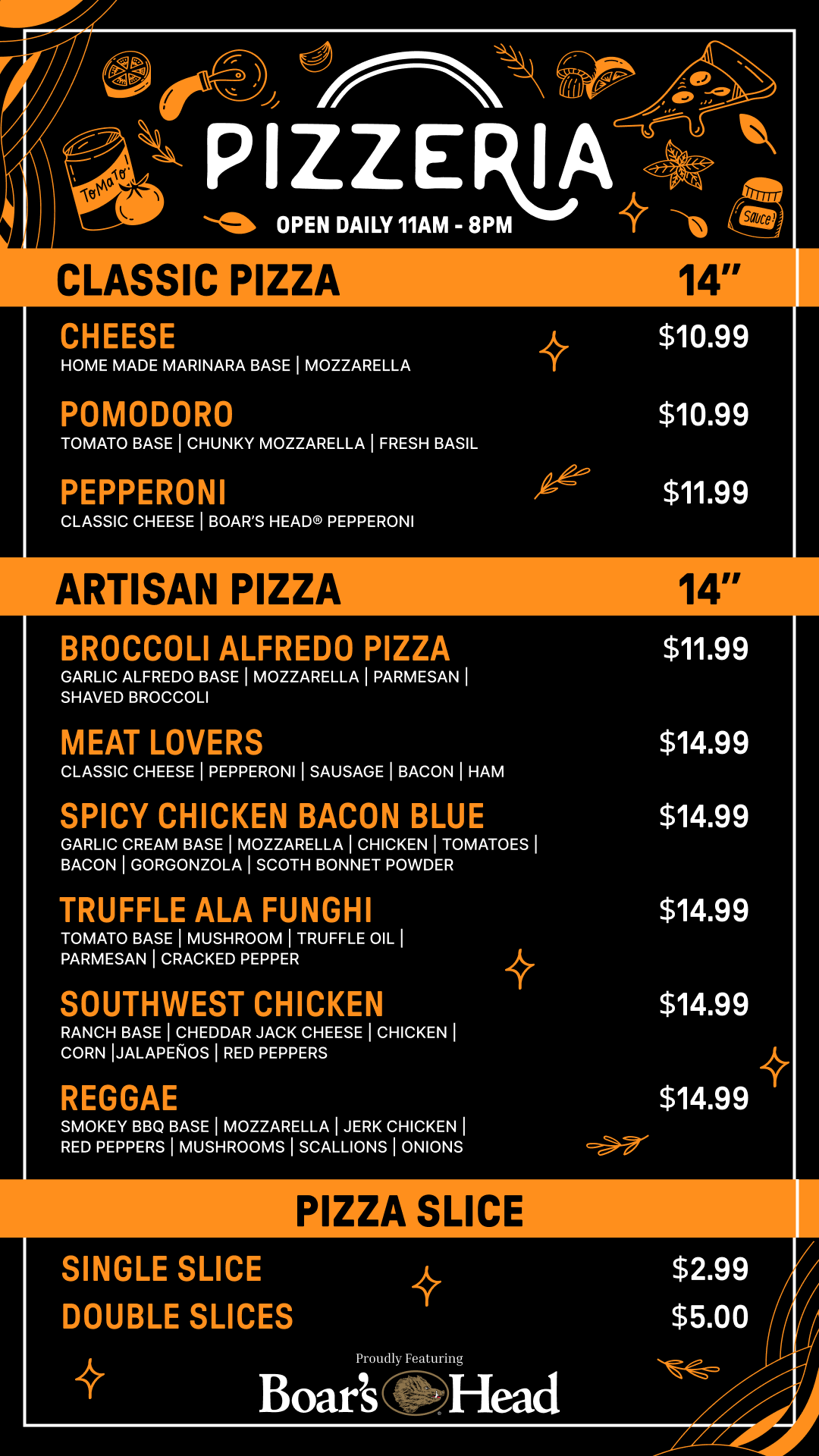 Indulge in handcrafted brick-oven pizzas made with fresh dough and premium toppings. Choose ready-to-go slices, 14” made-to-order pizzas, or customize your own. Perfect for gatherings or a quick meal! Starting at $11.99, you won’t find a better deal on Island.